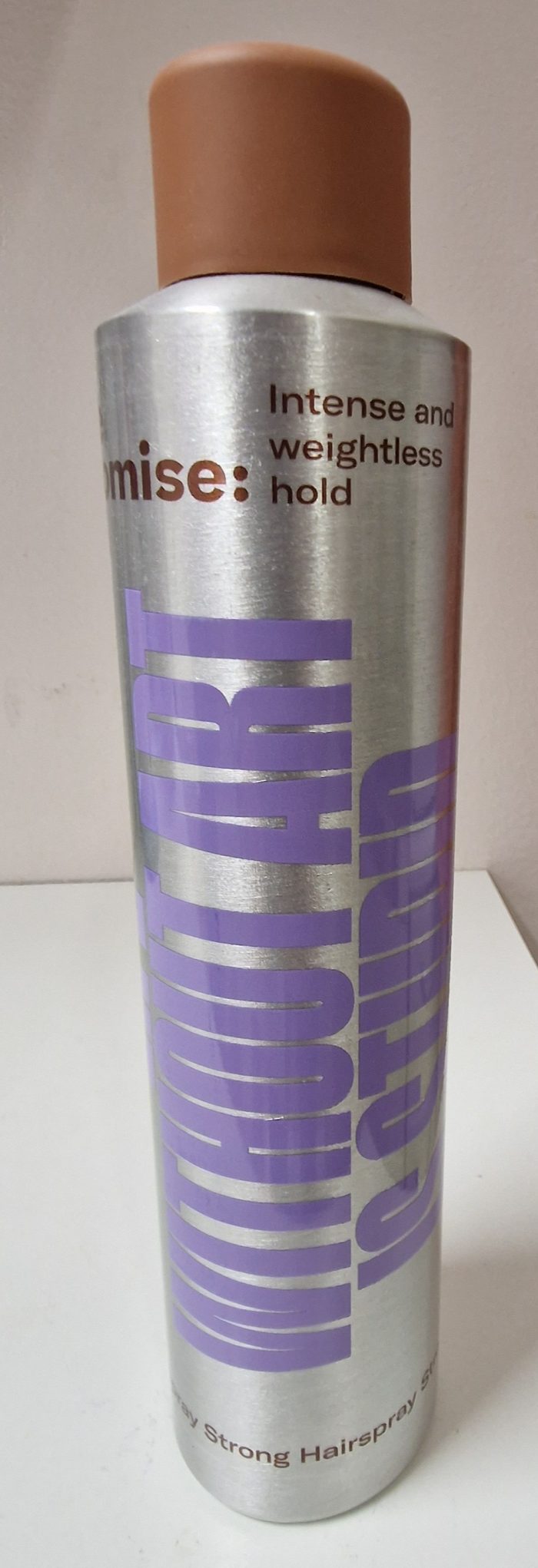 We promise; Strong hairspray 300ml 15,50€. Intense and weightless hold.